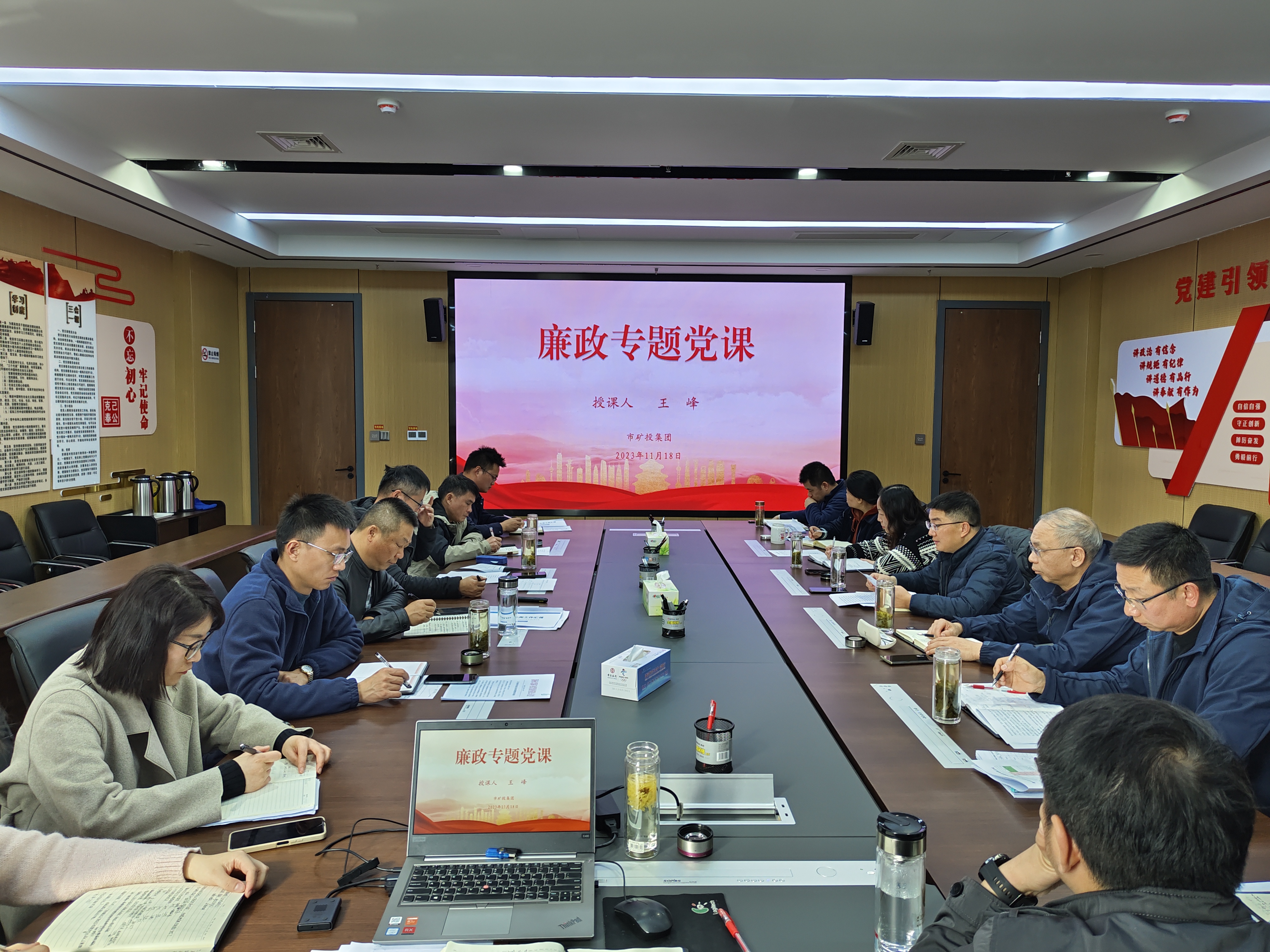 為深入貫徹落實(shí)全面從嚴(yán)治黨要求,進(jìn)一步加強(qiáng)集團(tuán)公司黨員廉潔從業(yè)教育,近日,市礦投集團(tuán)黨委書(shū)記王峰講授廉政專題黨課,集團(tuán)公司中層以上管理人員及各子公司主要負(fù)責(zé)人參加學(xué)習(xí)。