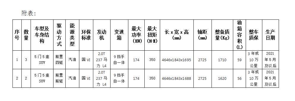 根據(jù)業(yè)務(wù)發(fā)展需要,滁州市興元商貿(mào)有限公司擬集中采購(gòu)業(yè)務(wù)保障車輛共計(jì)5輛,詳情見(jiàn)附表。