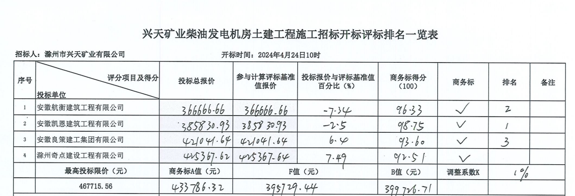 興天礦業(yè)柴油發(fā)電機(jī)房土建工程施工中標(biāo)候選人公示