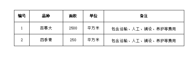 2.本次招標(biāo)進(jìn)行一次性報價,報價后不得修改。最終以總價進(jìn)行評審。報價應(yīng)包含但不限于貨物采購、運(yùn)輸、裝卸、種植、養(yǎng)護(hù)及稅金等費(fèi)用,我司不再支付其他任何費(fèi)用。