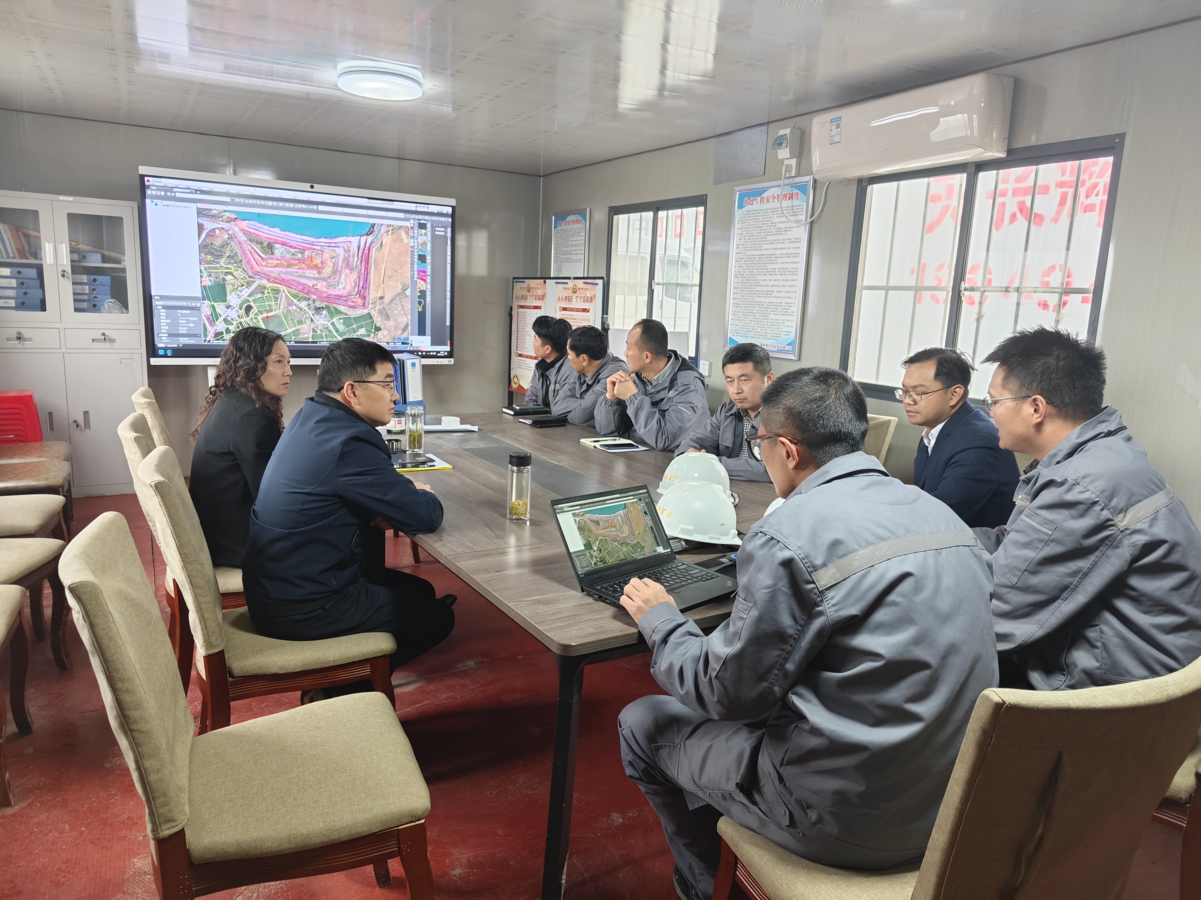 王峰一行來到諭興礦現(xiàn)場,詳細了解礦山基建情況和邊坡復(fù)綠進度,并召開現(xiàn)場座談會,協(xié)調(diào)解決生產(chǎn)過程中遇到的問題。王峰強調(diào),礦山安全生產(chǎn)工作責(zé)任重大,一要牢固樹立安全發(fā)展理念,充分認(rèn)識到礦山安全的重要性和緊迫性,從嚴(yán)從實從細抓好礦山企業(yè)安全生產(chǎn)工作;二要切實扛起安全生產(chǎn)主體責(zé)任,嚴(yán)格落實安全生產(chǎn)各項規(guī)定和制度,規(guī)范操作流程;三要堅持“綠水青山就是金山銀山”的發(fā)展理念,高標(biāo)準(zhǔn)開展生態(tài)修復(fù),確保礦山復(fù)綠工作取得扎實成效。四要加強員工管理,及時關(guān)注員工思想動態(tài),為他們解決生活上的困難,并不斷加大安全培訓(xùn)、教育、管理、監(jiān)督力度。